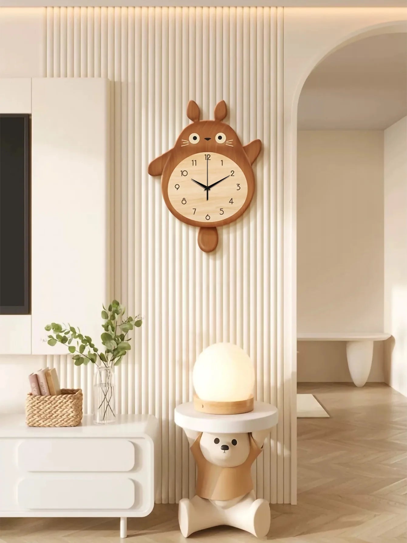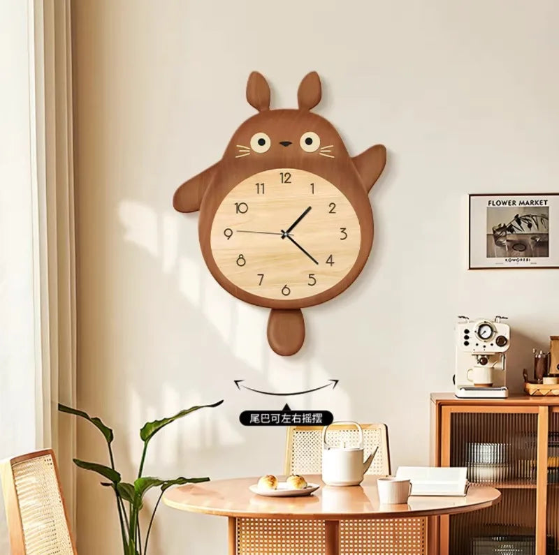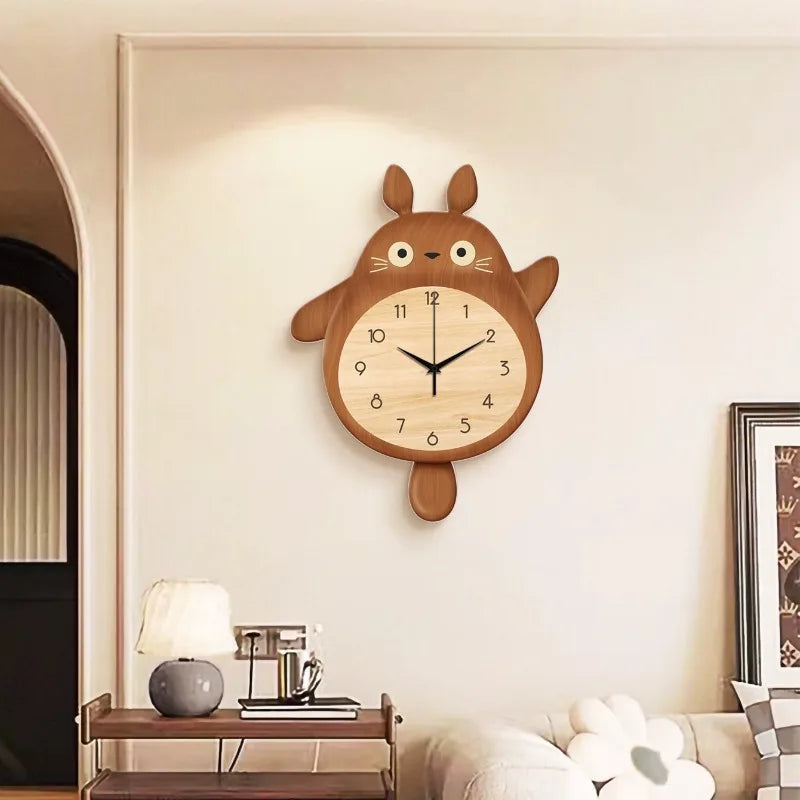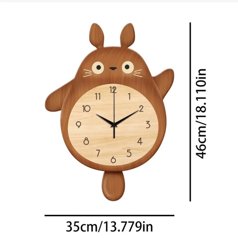 Features:The overall design of the clock presents a cute cartoon rabbit shape, which is not only childlike, but also adds a lively and warm atmosphere to the indoor environment. The main color of the clock is brown, which gives people a stable and warm feeling. With the white and black details, the whole clock looks more exquisite. Clocks and watches have a large round dial with numbers and hands clearly visible, which is convenient for people to check the time at any time. At the same time, the black rabbit pattern on the dial as the pointer of the clock is both interesting and creative. Above the clock, there is a yellow flower as a decoration, which not only adds vitality and vitality to the clock, but also complements the overall design style. The width of the clock is 32cm, and the height is 46cm. This size will not occupy too much space, but also ensure that people can clearly see the time and details on the dial.